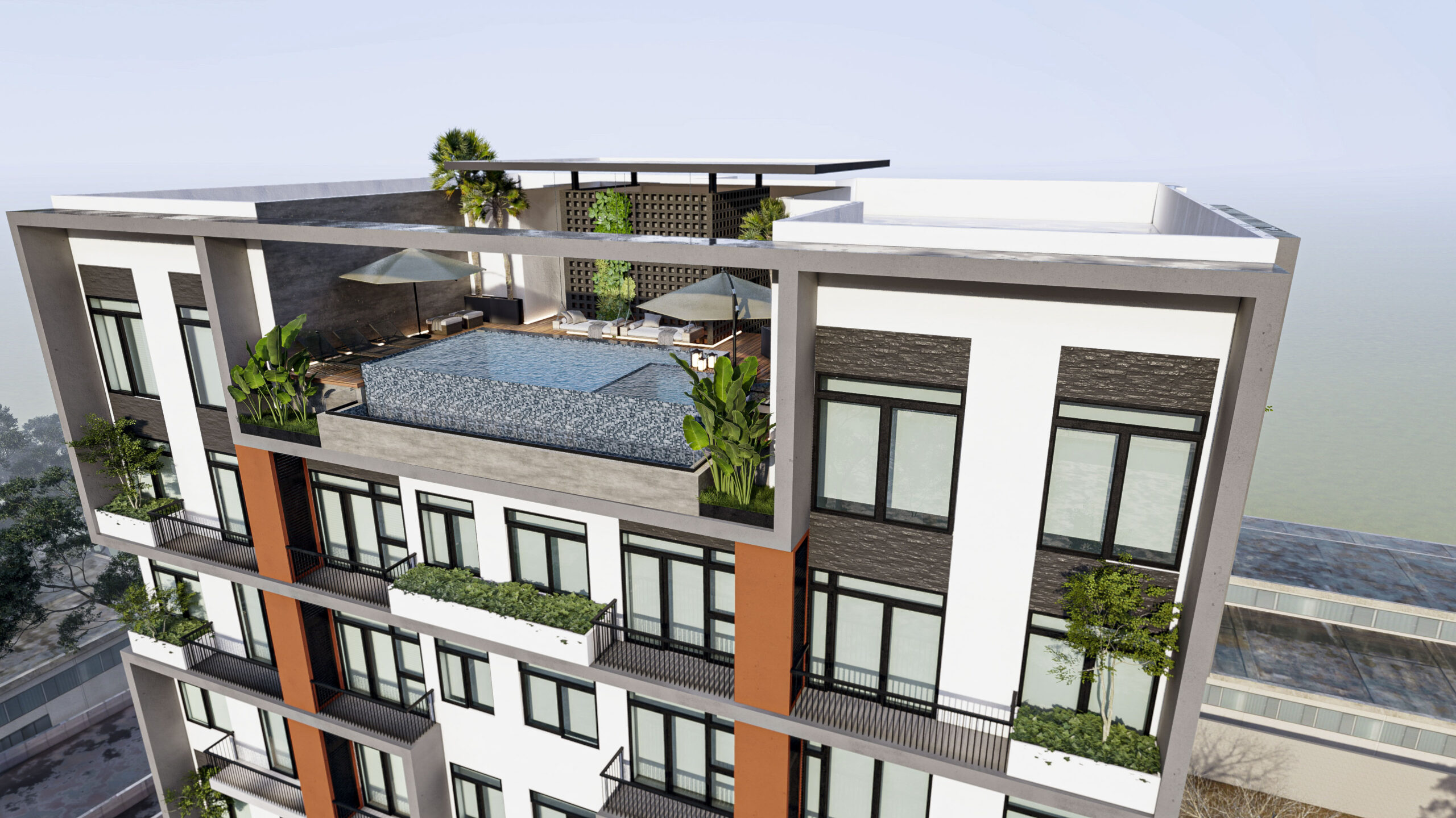 CERRO AZUL es un desarrollo de 8 niveles más rooftop en la Ciudad de Tepic, en un área de gran proyección con 35 unidades de 2 y 3 recámaras que van desde los 67 m² a 110 m².